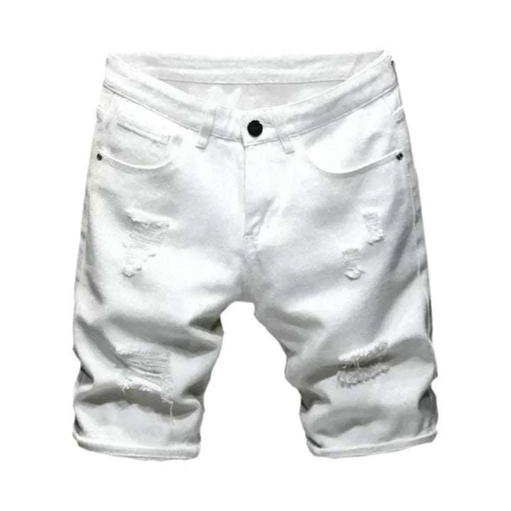 Make a statement with our 2023 Summer Collection slender whiskered ripped denim shorts and embrace street style with confidence! Give your look a fashionable edge with mid-waist, zipper & button closure design and make a lasting impression. Perfect for lazy brunches by the sea or a night out, these shorts will be your go-to for effortless summer elegance.