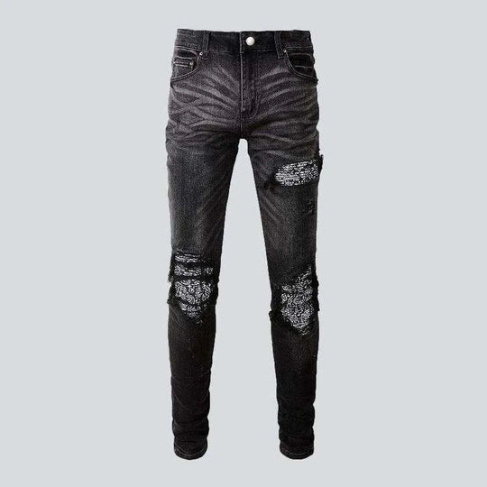 Vintage patchwork skinny men's jeans