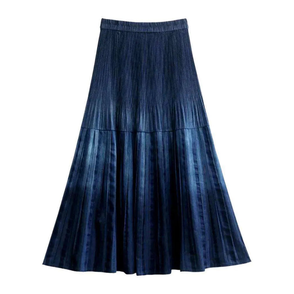 Make a bold statement this season with our 2023 Spring-Summer Collection Women's Dark Wash Ornament Print Denim Skirt! This elevated-waisted, floor-length piece perfectly combines hippie and trendy trend with a pleated finish, rubber closure, and a unique painted ornament print.