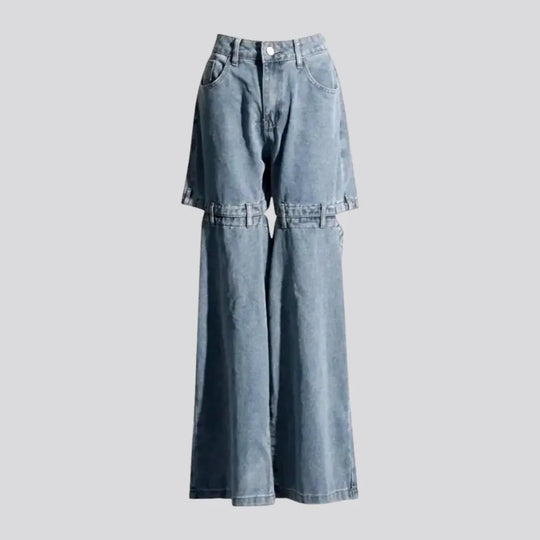Padded stonewashed wide women's jeans