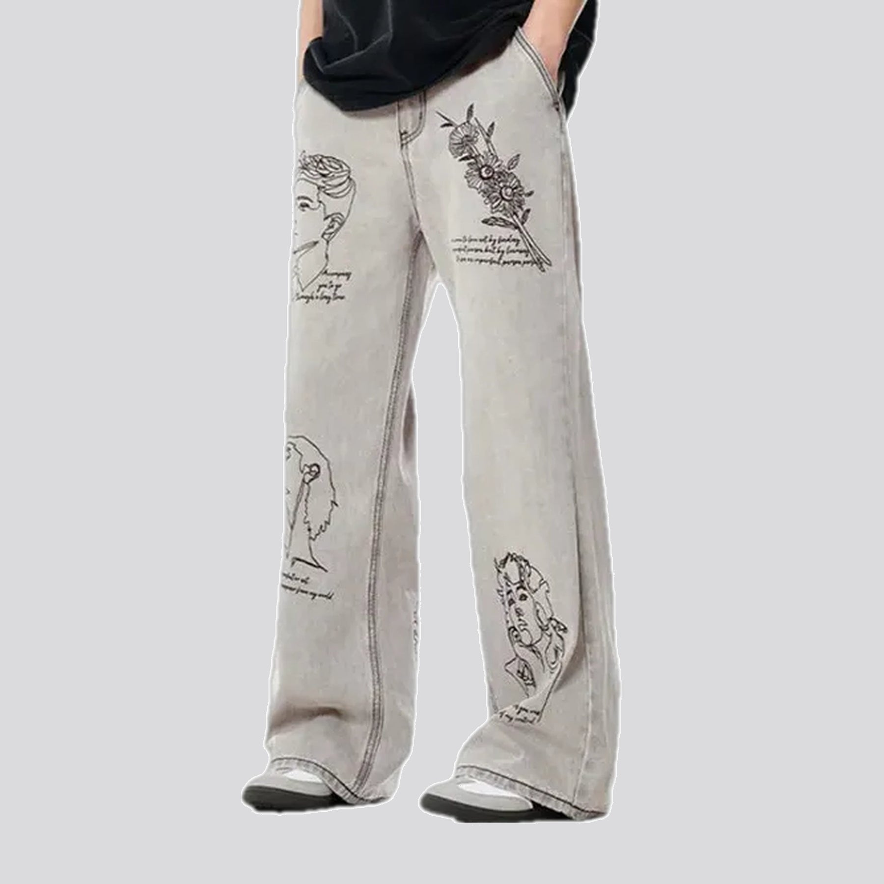 Wide Fit Floral Graphic Men's Jeans | Jeans4you.shop